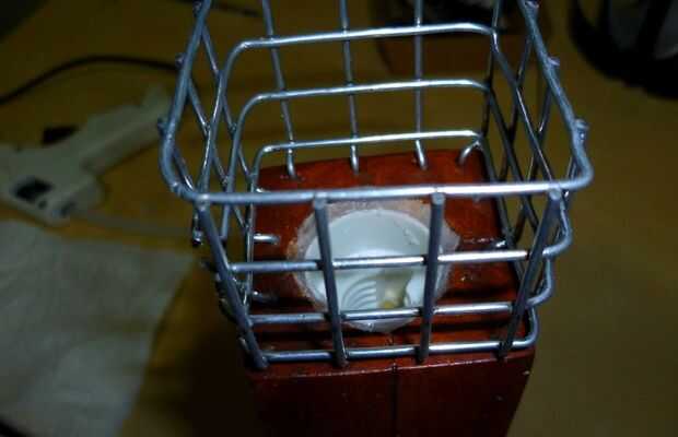 Pegamento de la malla de alambre en la parte superior de la antorcha (en los agujeros que ha perforado anteriormente).