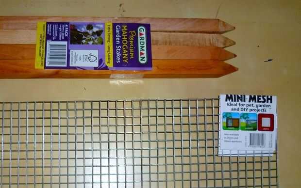 -cuatro estacas jardín madera de 25 x 25 mm (o cualquier cosa que puede resultar en una longitud de 50 x 50 mm de la madera)