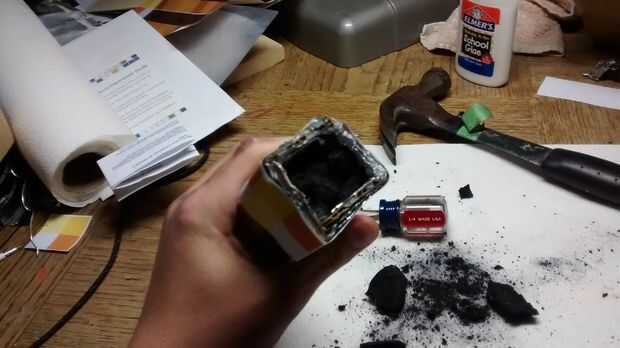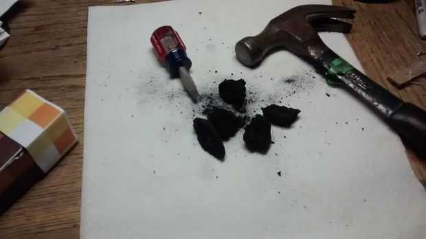 Ahora a preparar el carbón. Usted podría utilizar algo que no sea de carbón, pero en el espíritu de minecraft, utiliza carbón. Ahora, conseguir algunos carbón (si soy honesta, utiliza carbón de leña, pero todavía funciona en minecraft por lo que todavía debe trabajar en la vida real derecho?), me consiguió un pedazo de carbón y entonces llevó un martillo y el tornillo conductor y roto en pedacitos. Luego de poner en el lavabo de fuego. También he añadido algún líquido encendedor para ayudar a obtener el fuego va.