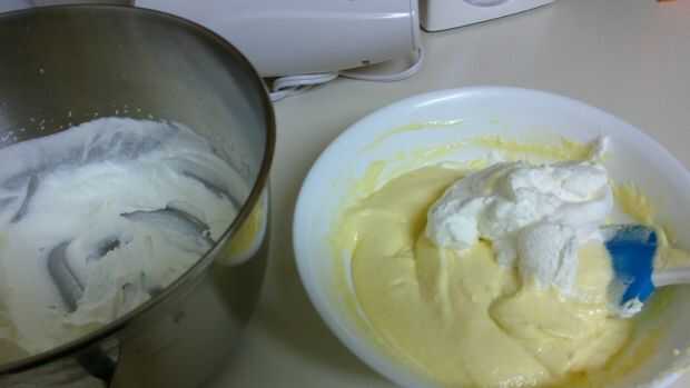 Luego Vierta la mezcla de otros en el resto de la nata y mezclar cuidadosamente hasta sólo combinar (no en mezcla)