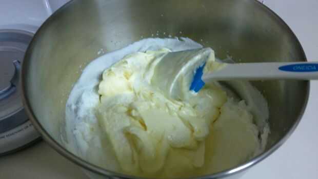 Cucharada de la crema batida en la otra mezcla y mezcla hasta combinar sólo