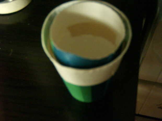 desenvolver la parte superior de la segunda taza de café de recordar la parte superior de la primera taza de café, corte la parte superior de la que fuera y ponerlo dentro de la segunda taza de café. Asegure con cinta. Tu estás hecho!