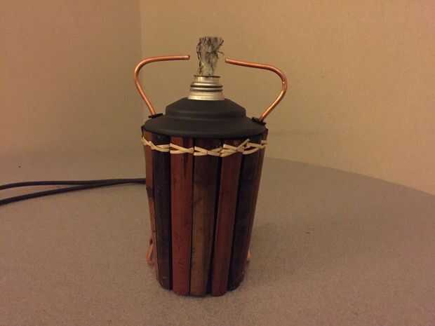 Necesita su botella de cerveza favorita u otra botella, mecha de antorcha tiki, guita del yute, combustible de tiki, una caña de bambú y un encendedor. También puede utilizar como una linterna de mesa y omitir la guita de poste y yute de bambú.