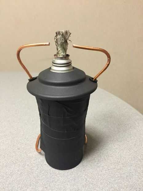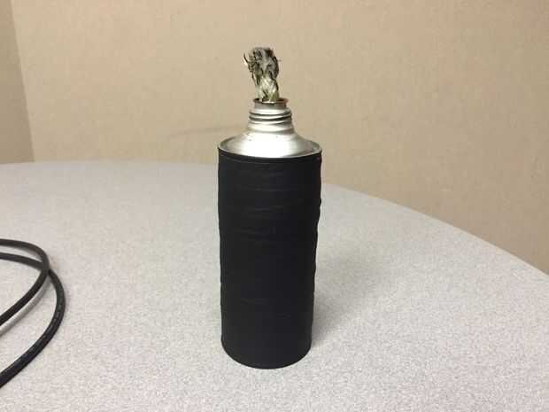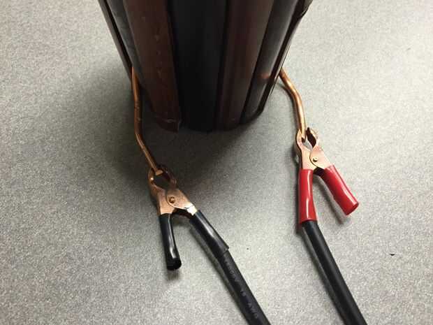 Si su contenedor de combustible es de metal, utilice cinta aislante para aislarlo. Haga dos orificios en la tapa e inserte los bujes de nylon o arandelas de goma para aislar los electrodos. Cortar dos tramos de alambre de cobre alrededor de 13 pulgadas, con cinta adhesiva al lado del cartucho de combustible e introducir en los agujeros en la tapa. Los electrodos se doblan a la forma deseada con un pequeño espacio que rodea la mecha de la antorcha tiki. Conecte los cables del transformador de señal de neón a sus electrodos de cobre con pinzas de cocodrilo. Mi transformador de señal de neón tiene una cadena lo cambie si no tuyo, enchufe el transformador de señal de neón en una regleta con el poder de.