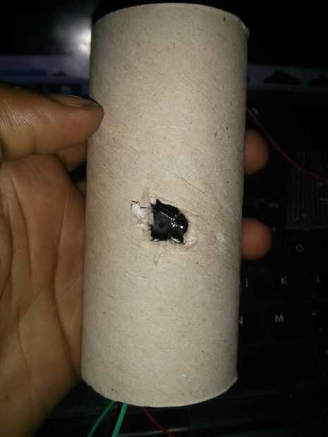 Una vez que termines, haz tu tubo de papel higiénico y hacer un agujero bastante pequeño, de interruptor, en el centro del tubo.