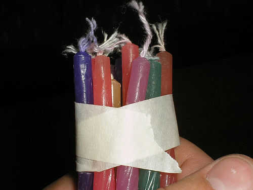 Grupo para arriba las velas por lo que las bases son aún, entonces sólo envuélvalo con un pedazo de cinta adhesiva para sujetarlo a las bandas de goma.