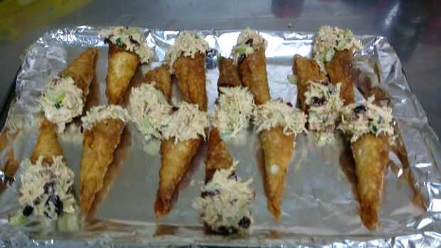 Ver pasos para WontonIngredientes:1 taza de nueces picadascarne de pollo cocido desmenuzado 4 tazas1 taza de mayonesa1 cucharadita de pimentón1 cucharadita de ajo en polvo1 cucharadita condimento para aves1/4 de cucharadita de Cayena1 cucharadita de