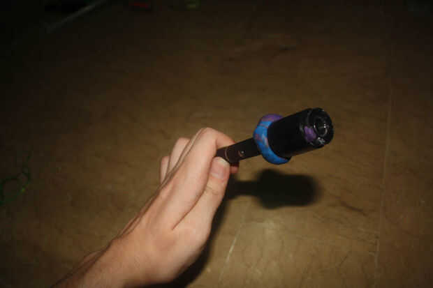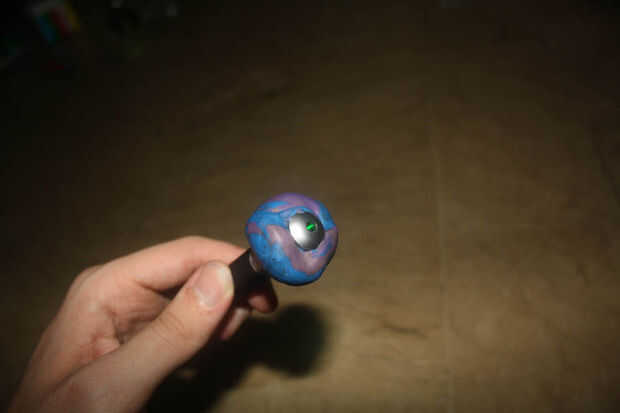 Envuelva la arcilla/la playdoh alrededor del extremo de su láser (donde la viga sale) y use para unir la lente en la pluma del laser.
