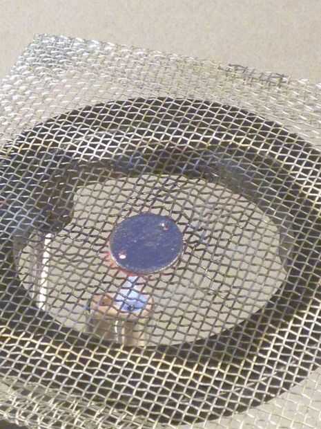 Consejo útil: Coloque un recipiente debajo de la plataforma de malla para atrapar el exceso de polvo que no aterrizar en los centavos. También funciona una página de revista brillante bajo la plataforma. Devolver el exceso de polvo tarro antes de disparar como algo de él puede derretirse mientras quema y evitar restos carbonizados del aterrizaje en el polvo caído haciéndola no más usable.