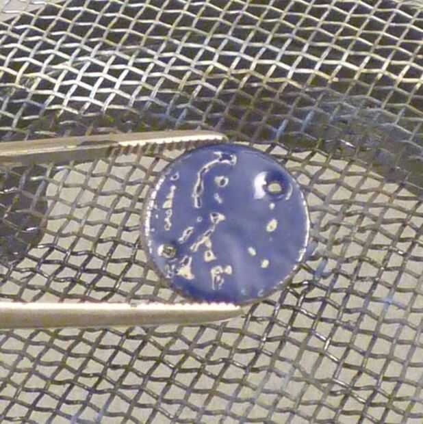 Nota: Cuando use la antorcha técnica de disparo, puede solamente esmalte un lado de la moneda. La moneda los bancos y tratando al otro lado del esmalte resultará en permanente fusión de la primera capa de esmalte a tu malla. Wah-wah.