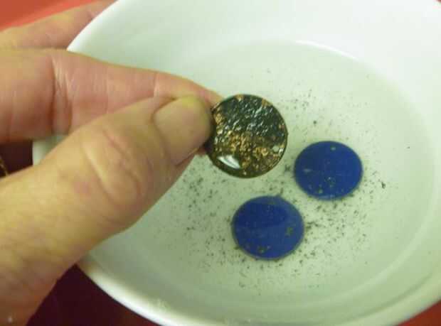 También, aunque es tentador, no apagan las monedas calientes en la solución de limpieza. Este enfriamiento rápido se agrietará el esmalte.