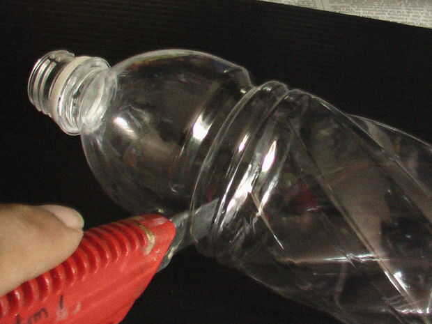 Cortar una botella de plástico de soda usando un cortador de 1/4 forma de la tapa. Cortar todo. Más tarde puede utilizar tijeras para recortar los bordes irregulares.