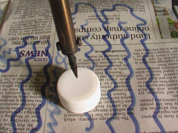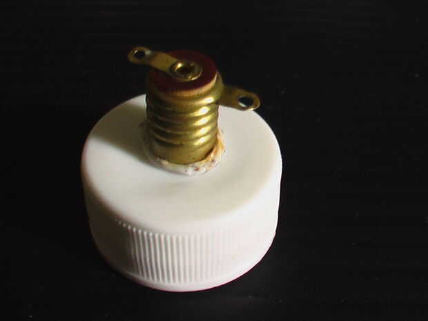 Usando un viejo soldador, hice un agujero en la tapa en el centro de la parte de la bombilla y bombilla empujado en.