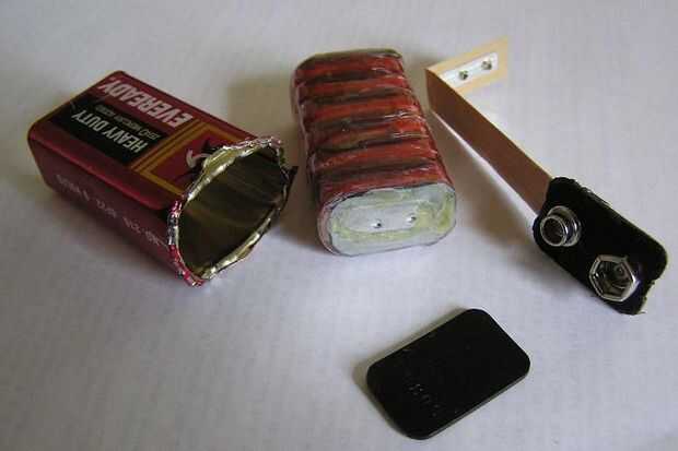 Sólo por interés: otro uso de la terminal es para hacer tus propios clips de batería. Sólo una longitud de cable de conexión aislada a las espaldas de cada terminal de la soldadura y la pieza base de la batería en la parte posterior del pegamento. Sé pinzas son baratos, pero es una buena manera de reciclar algunos de la vieja batería. También cuelgo en la carcasa de la batería de aluminio. Es útil un pequeño recinto como una fuente de aluminio plana fina.