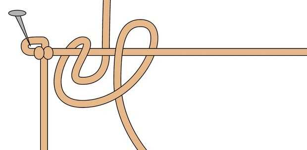 Un nudo doble enganche de media, teniendo cuidado de mantener el centro de la hebra en el perno. Si tienes problemas solo Desatadlo y vuelva a intentarlo!