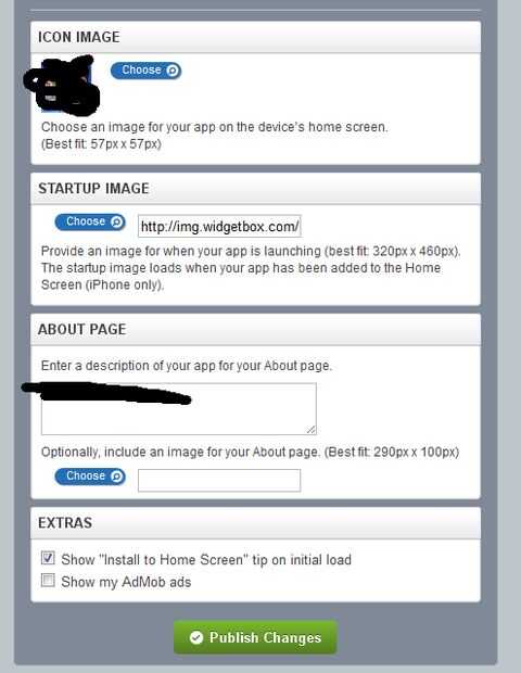 Tienes la opción de añadir un icono a la aplicación y añadir un texto para el botón de información o una imagen de inicio