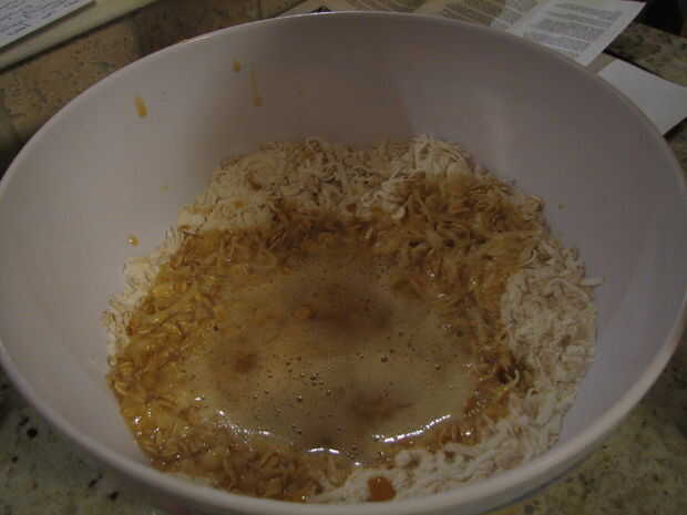 - Revuelva los ingredientes secos antes de la espuma desaparece.