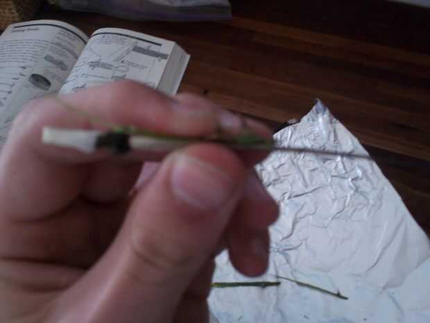 -Fijar la primera espina poniendo en su lugar y agregando un poco de resina o cemento para mantenerlo temporalmente allí. Se unen con una buena cantidad de hilos o cordeles para mantenerlo en su lugar. Este enlace es especialmente importante cuando se utiliza adhesivos de secado lento, tales como cemento de goma.