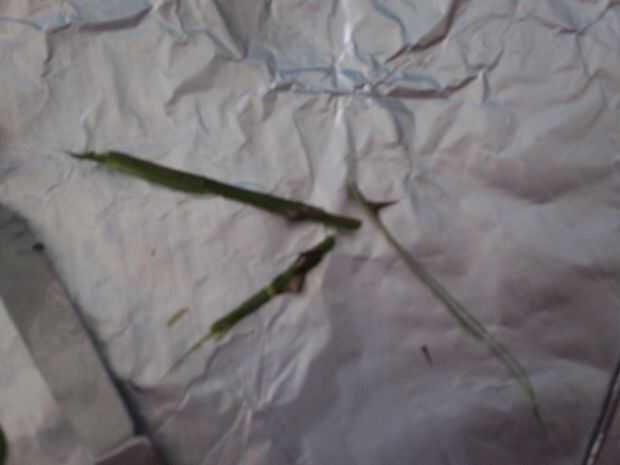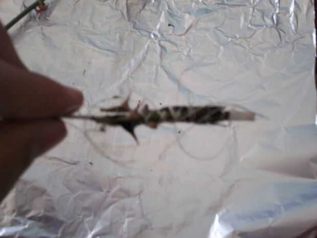 -Recorte de tres espinas de cuarto de pulgada por encima de la espina y una pulgada por debajo de la espina. Si usted interrumpe dos espinas en un ajuste, es su decisión si desea mantenerla. En mi caso, dos veces corte dos espinas en una guarnición; Sólo rompí una de las espinas cada vez.