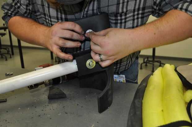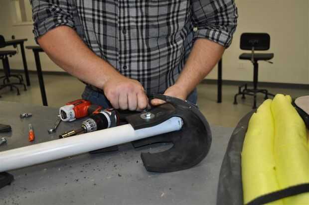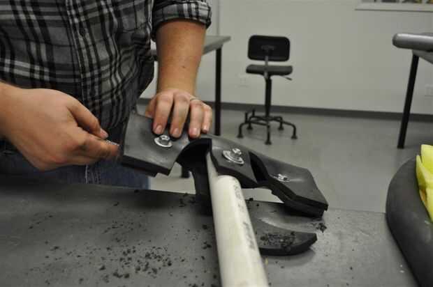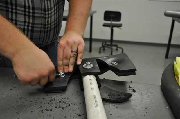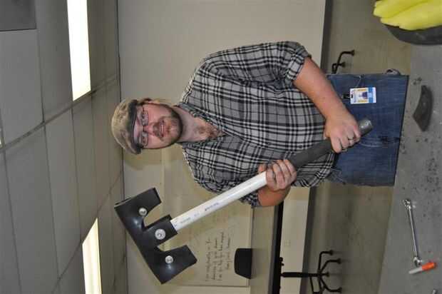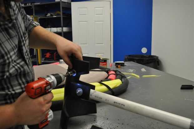 El truco más grande es encontrar que el tamaño correcto pernos de empuje a través de todo el camino, pero no apriete más allá del tamaño de la tuerca en el otro extremo. Sin embargo, también es necesario que vaya hasta la goma bastante elástica. Una combinación de grasa de codo, un destornillador hexagonal de un taladro eléctrico y algún vocabulario zafio fue capaz de terminar esta parte, y usted termina con el núcleo/esqueleto de la cabeza del hacha.