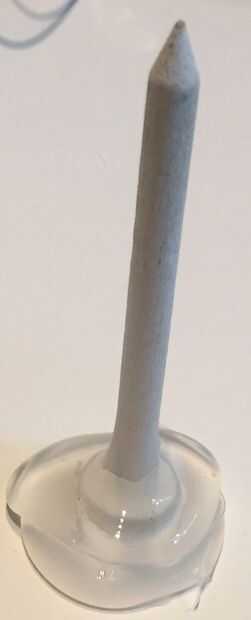 3. Inmediatamente Coloque la tee en medio del Charco de pegamento caliente y presione firmemente hacia abajo