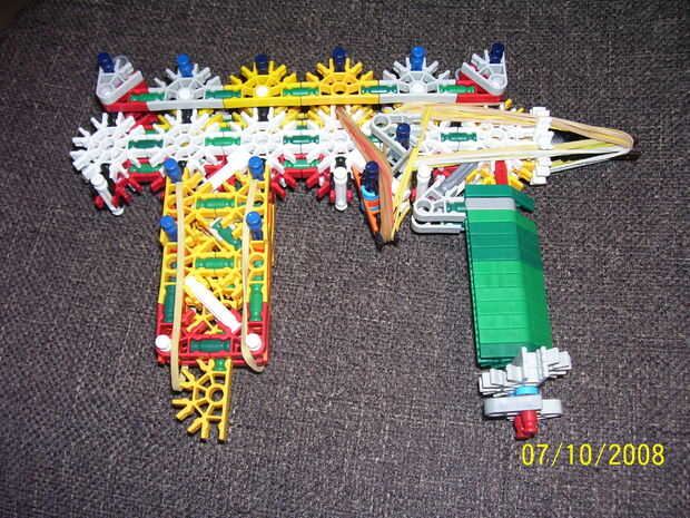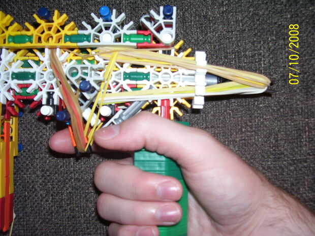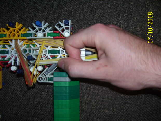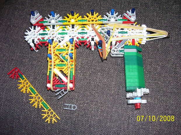 2: Saque el alimentador de clip y el clip con uno ranura gris, un agujero de la barra de k'nex, conectores de llenado.