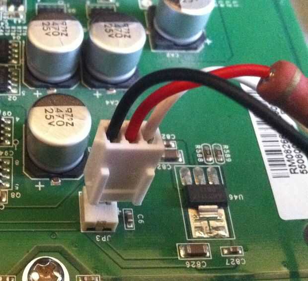 Mayoría de los ventiladores tiene tres pines clavijas - deja el cable blanco (tacho) colgando del lado. Casi siempre es de tierra negra, y el otro color debe ser + 12V