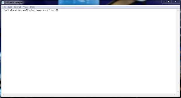 c:\Windows\System32\shutdown -s -f -t 00 (o.. .shutdown -p -f)