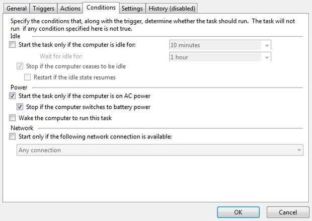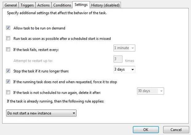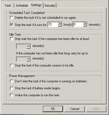 En Windows XP y más viejos, abra tareas programadas. Haga su tarea y abrir sus propiedades. Hacer ajustes favorables en la ficha Configuración.