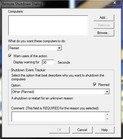 cierre [-i o -l o -s o - r o -g o- o -p o/h o -e] -f -m \\computername -t xx -d [p o u]:xx:yy - c "comentario"