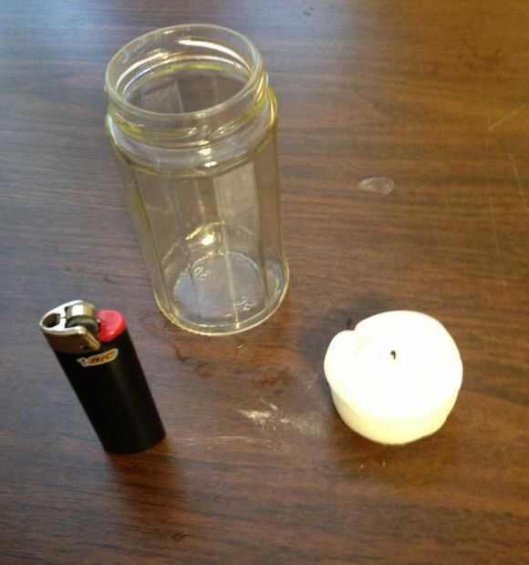 Este tutorial es bastante simple y no requiere mucho además de algún tiempo y estas herramientas: 1. un frasco de vidrio 2. una fuente de la llama (encendedor o fósforos) 3. una vela 4. y un globo de dióxido de carbono (no fotografiado). Si no tiene ninguno a mano, aprender a hacerlo.