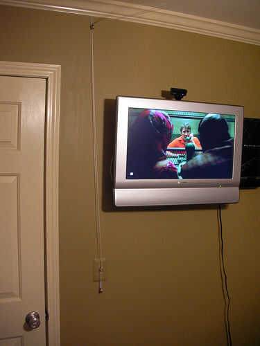 Tornillo de poleas otra sobre el interruptor de la luz en la habitación.