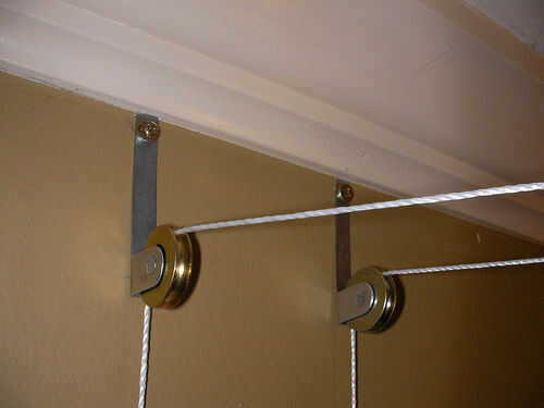 Tornillo 2 poleas en la pared superior o techo para que se cuelgue el cable donde se puede llegar.