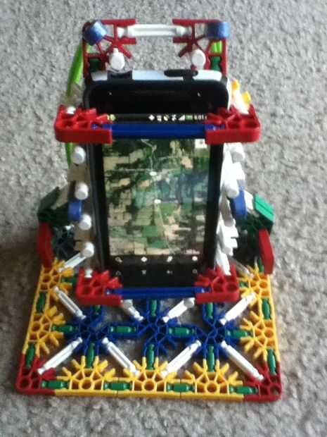 Imagine esto: su perdida en el desierto en una solitaria calle. Tiene ninguna idea de donde estás y no hay manera de averiguar. Si sólo tuvieras una manera de encontrar su camino a casa! Por suerte, todavía tienes su teléfono celular y una caja de K'nex en el tronco. Es el momento de hacer el titular de K'nex GPS/teléfono (emergencia)! Este funciona para cualquier dispositivo rectangular, como el HTC EVO, iPhone o Droid.* esto puede también usarse como una metralleta para tomar video de ningún incidente notable durante la conducción.
