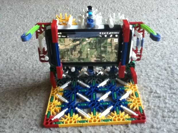 Para girar el soporte, sacar los tapones azules en las barras verdes de bendy y tirar de las barras verdes de los conectores rojo superiores. Luego, gire la caja y deslice las barras verdes a través de los nuevos conectores rojo superiores. Por último, colocar los tapones azules en las barras verdes.