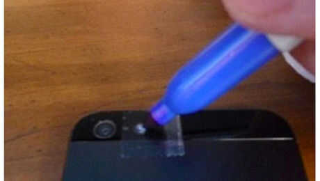 Todo lo que necesita es un smartphone con una luz, tres pedazos de cinta pequeña y dos sharpies. Una azul, una morada.