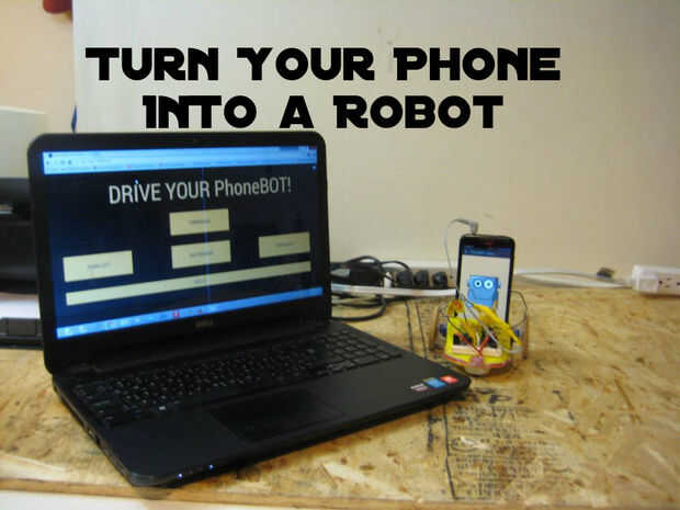 Un método barato, fácil y rápido para convertir un teléfono con Android en un robot reprogramable. Sin hardware adicional (micro controladores, controladores de motor, etc.) requerida!
