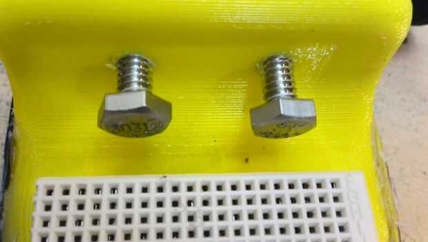 Atornille los pernos de 1/4-20 en agujeros frontales de la base. Los agujeros son apenas el tamaño correcto para golpear ligeramente.