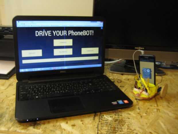 PhoneBOT se compone de un teléfono con Android, dos servos continuadas y wheels(modded), un par de auriculares (preferiblemente roto), una batería de 9V y una base de impresión 3D. Cuando se ensamblan estos objetos tenemos un robot que puede ser programado para hacer un gran número de cosas. El programa por defecto le permite manejar remotamente el robot desde una PC.