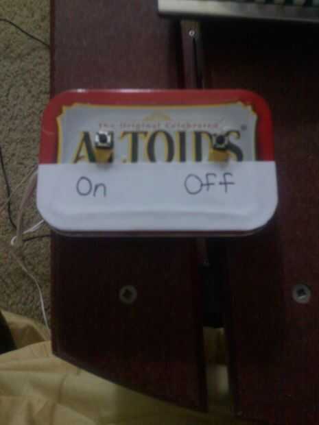 ahora soldar un cable a cada uno de los retorcidos en el paso 3. (se debe solamente ser el 2, ambos tienen un positivo y negativo torcidos juntos) luego pase los 2 cables por el orificio en el lado de la caja (poner un nudo en el interior para evitar que el cable tirando hacia afuera). ahora soldar los otros extremos de los cables a los puntos del motor. ahora atornillar la placa frontal en la pared. Finalmente averiguar qué botón se enciende la luz y que se apaga la luz (hice una etiqueta). y probarlo para asegurarse de que funciona.