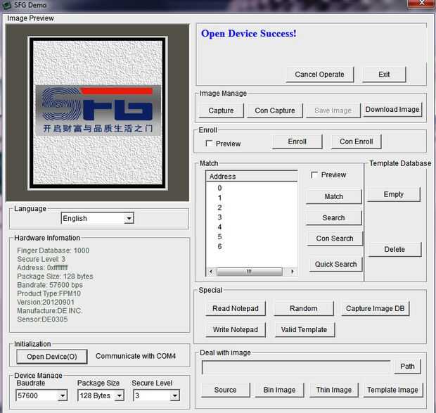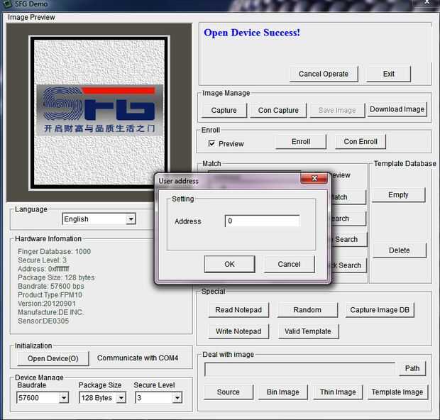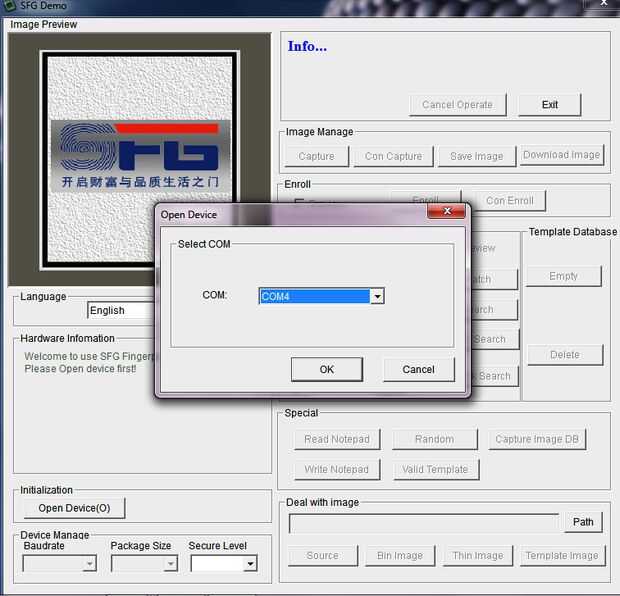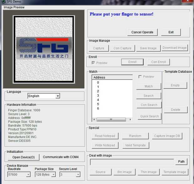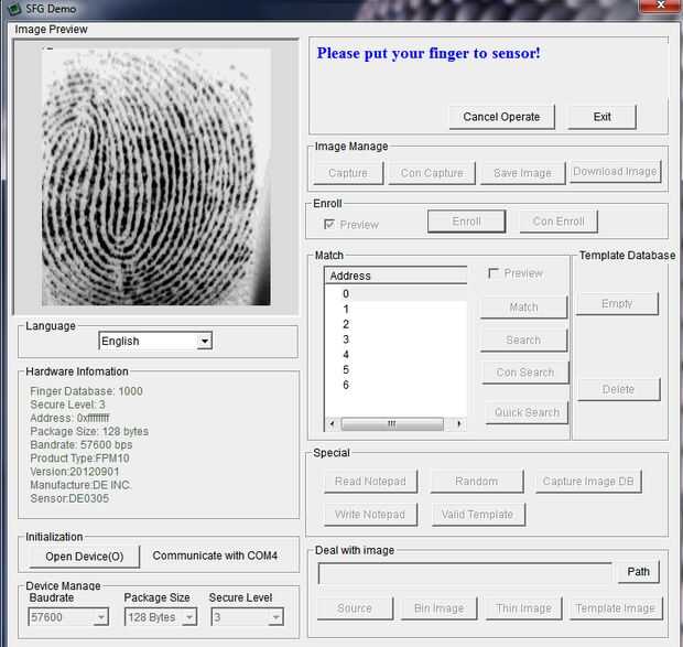 Abra el software de SFGdemo y empezar a inscribir a dedo del usuario.