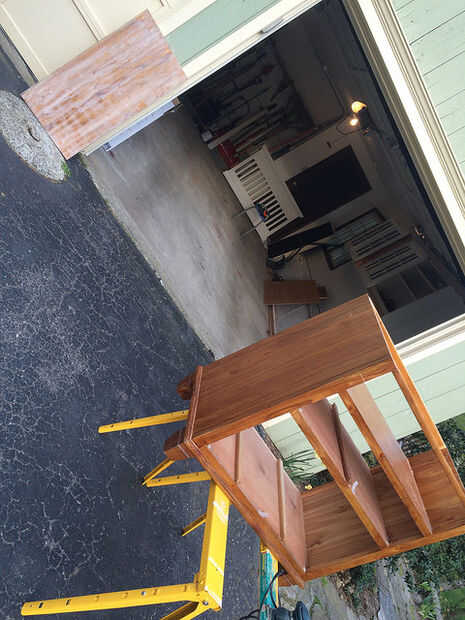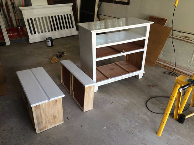 Tomé el aparador exterior y enarenó. Luego aplicar una mano de imprimación y una capa de pintura blanca Semi mate. Reensamblar, rellenar cualquier costuras y luego aplique una segunda capa / adicionales retoques y ahí lo tienen.