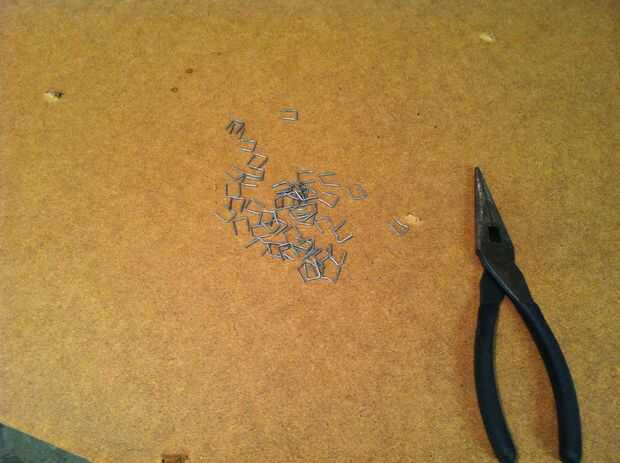 Retire todas las grapas con el respaldo. Alicates de punta funciona bien.