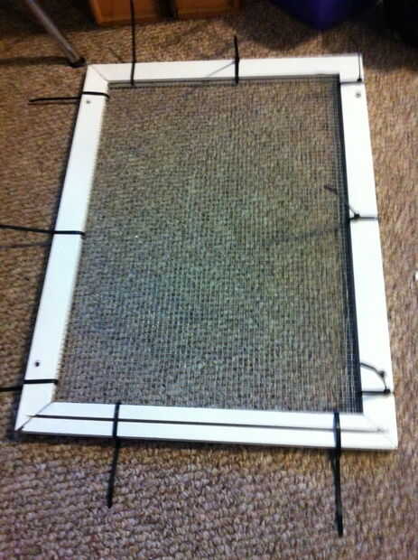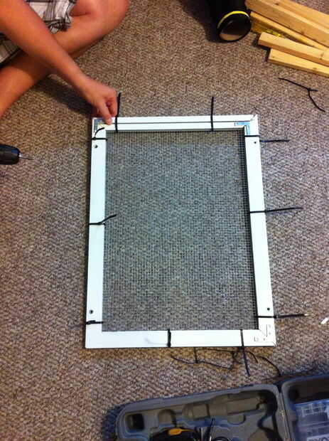 Para mantener el alambre en su lugar utilicé lazos zip. Entonces sujetó soportes en "L" a las cuatro esquinas. Una vez que los soportes en "L" están en su lugar usted puede cortar los lazos del cierre relámpago.