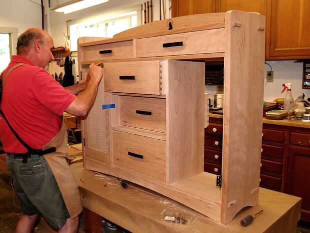 La madera principal es cereza. Los paneles de puerta son Arce tigre. Cualquier madera dura puede ser utilizada para este proyecto.