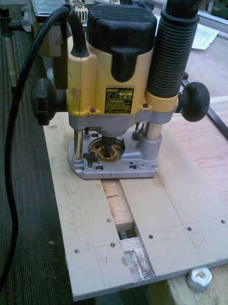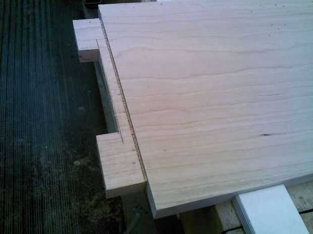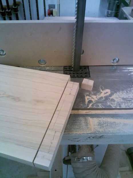 Después el hombro se hace corte, levante la hoja a 1", colocar la Junta en borde y cortar los hombros sin cambiar la posición del bloque de parada.