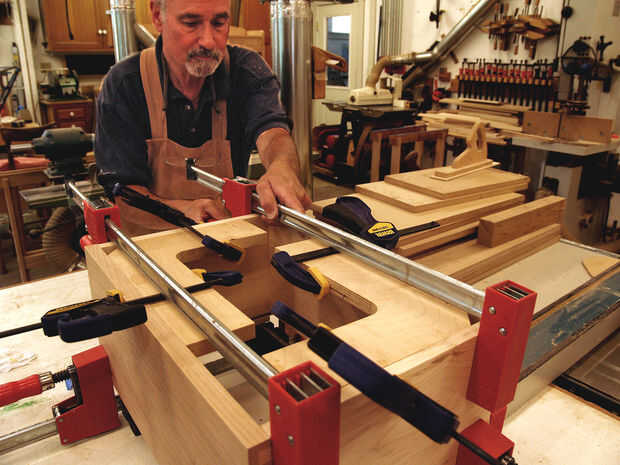 Antes de empezar a pegar, preparar las pinzas. Utilizar URL las abrazaderas de la barra. Los cajones de remolque superior son sólo 4 ½" de alto y tendrá menos abrazaderas. Los otros cajones son más altos y requieren abrazaderas en la parte superior e inferior.