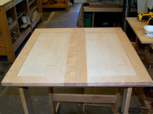 Las puertas se hacen con 2" amplia montantes y travesaños superiores. El riel inferior esté 3" de ancho. Todos los marcos de las puertas son ¾" cereza.