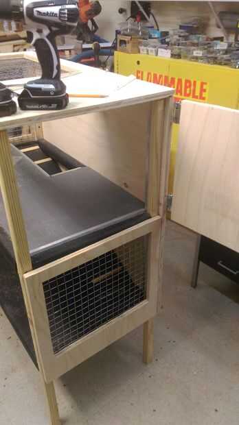 Otra vez visibilidad era importante, por lo que mide cada lado y cortar hacia fuera otra vez. El lado izquierdo era una pieza sólida que corte la ventana superior de. Luego lo atornilló en el marco. El lado derecho corte las dos piezas por separado. La parte inferior (que puse una ventana en y atornillada en el marco) y la parte superior que es una pieza sólida, que os adjunto las bisagras para que se abre al segundo nivel.