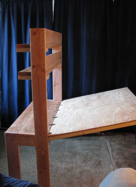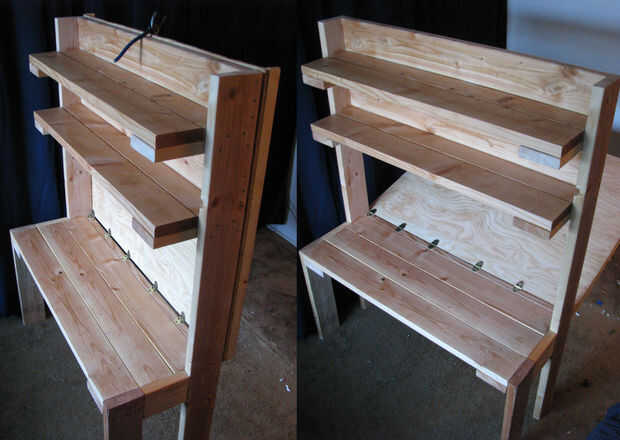 Lamentablemente, esto sigue siendo un trabajo en progreso. La espalda como usted ver aquí realmente falta su otra mitad, así como de las patas plegables que lo apoyará en la posición hacia abajo.